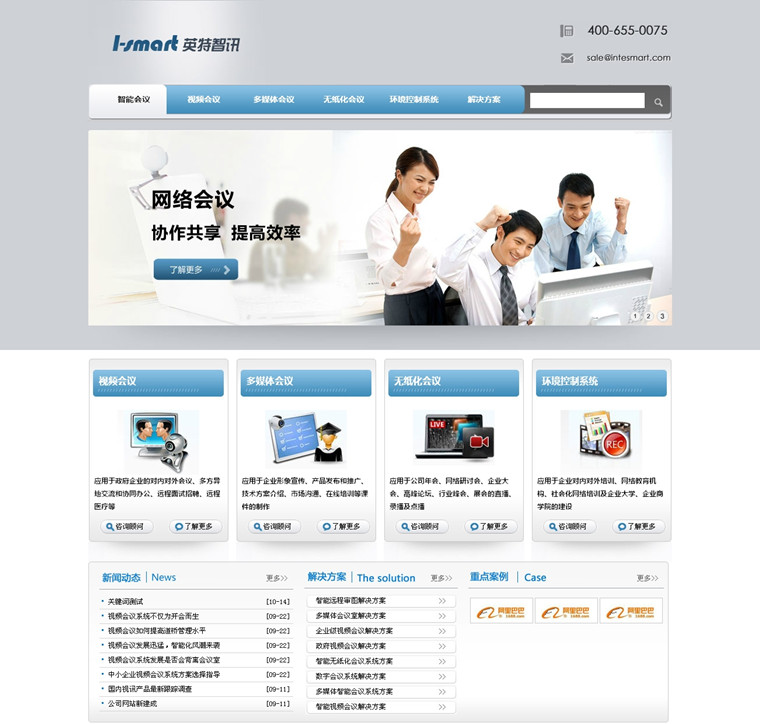 英特智讯科技(北京)有限公司(http://www.intesmart.com/)是一家专业致力于视讯产品集研发、生产、销售与服务的高科技现代企业,是业界领先的高清智能视频会议终端一体化解决方案提供商。公司成立以来,先后推出了数字语音处理器、数字语音传输器、智能电源控制系统、大屏幕液晶触摸显示器、监视器、液晶信息发布终端、SMART I 智能终端等产品,并在2010年推出了革命性的 SMART I 智能会议系统,开创了智能会议一体化终端的新篇章。