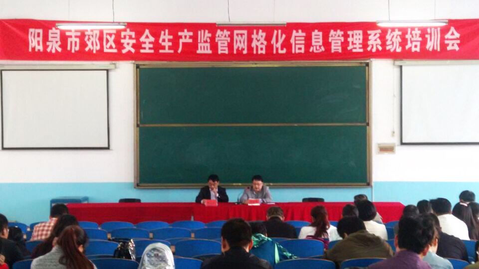 热烈祝贺山西阳泉郊区安全生产监督网格化管理系统软件于2015年9月23日正式交付使用,并对54个成员单位进行了相关内容培训。这次培训会在阳泉郊区古城中专学校举行,得到了郊区领导的重视。
