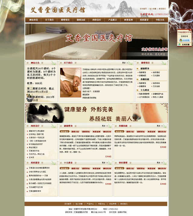 艾香堂(http://www.aixiangtang.com/)由从事临床15年的中医执业医师魏大夫主调,通过中医四诊合参及人体经络辩证综合考虑您的身体状况,运用各种中医外治手法使人体的经络达到"阴平阳秘""气血和谐"的良好状态,使您的身体达到疾病消除、亚健康平和、延年益寿的调理目的。艾灸采用的是艾香堂特制的五年陈艾绒并加药制成的艾条,艾香堂特制药艾具有美容养颜利湿排毒的功效,很好的弥补了单纯艾草之不足。